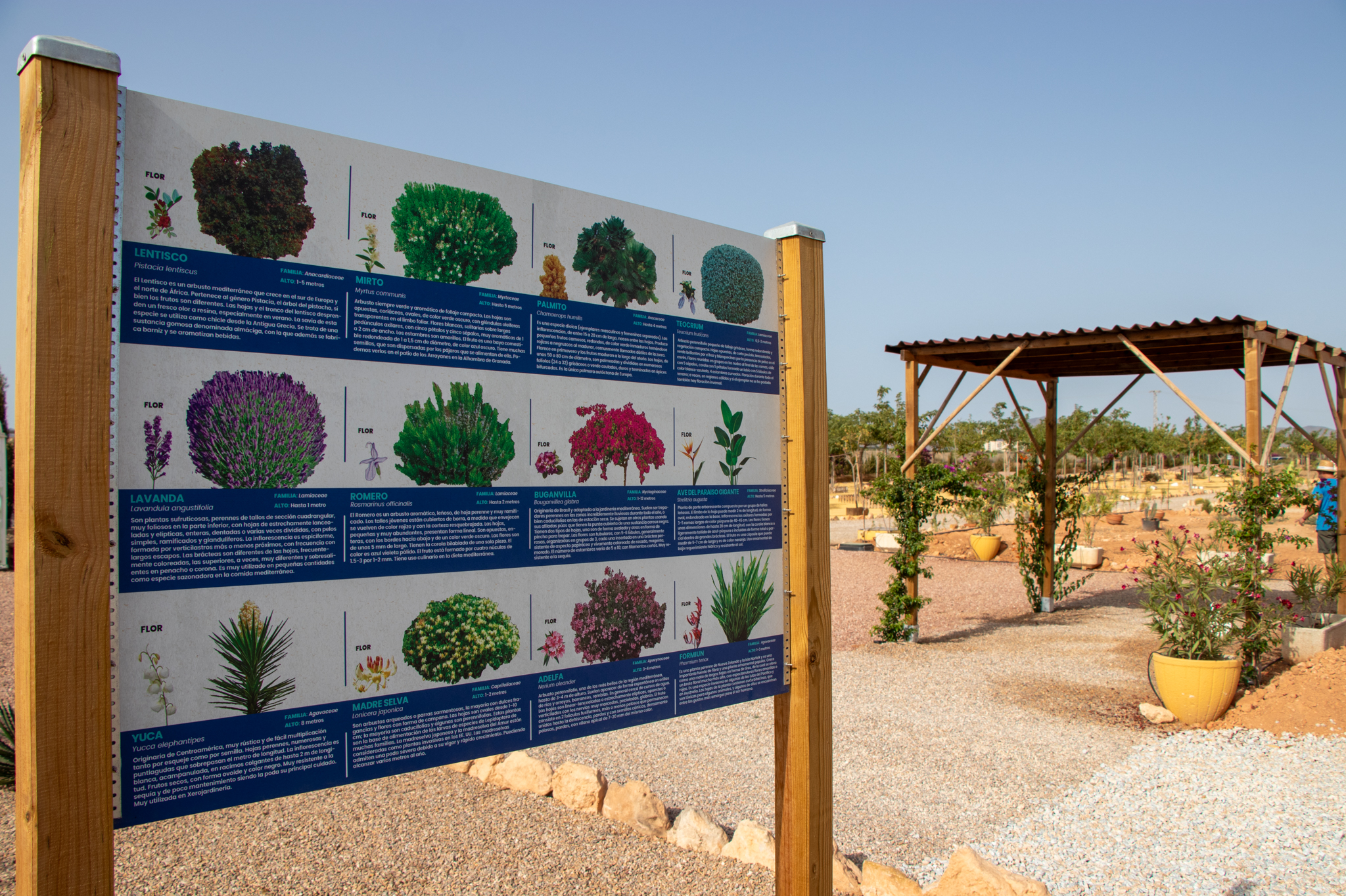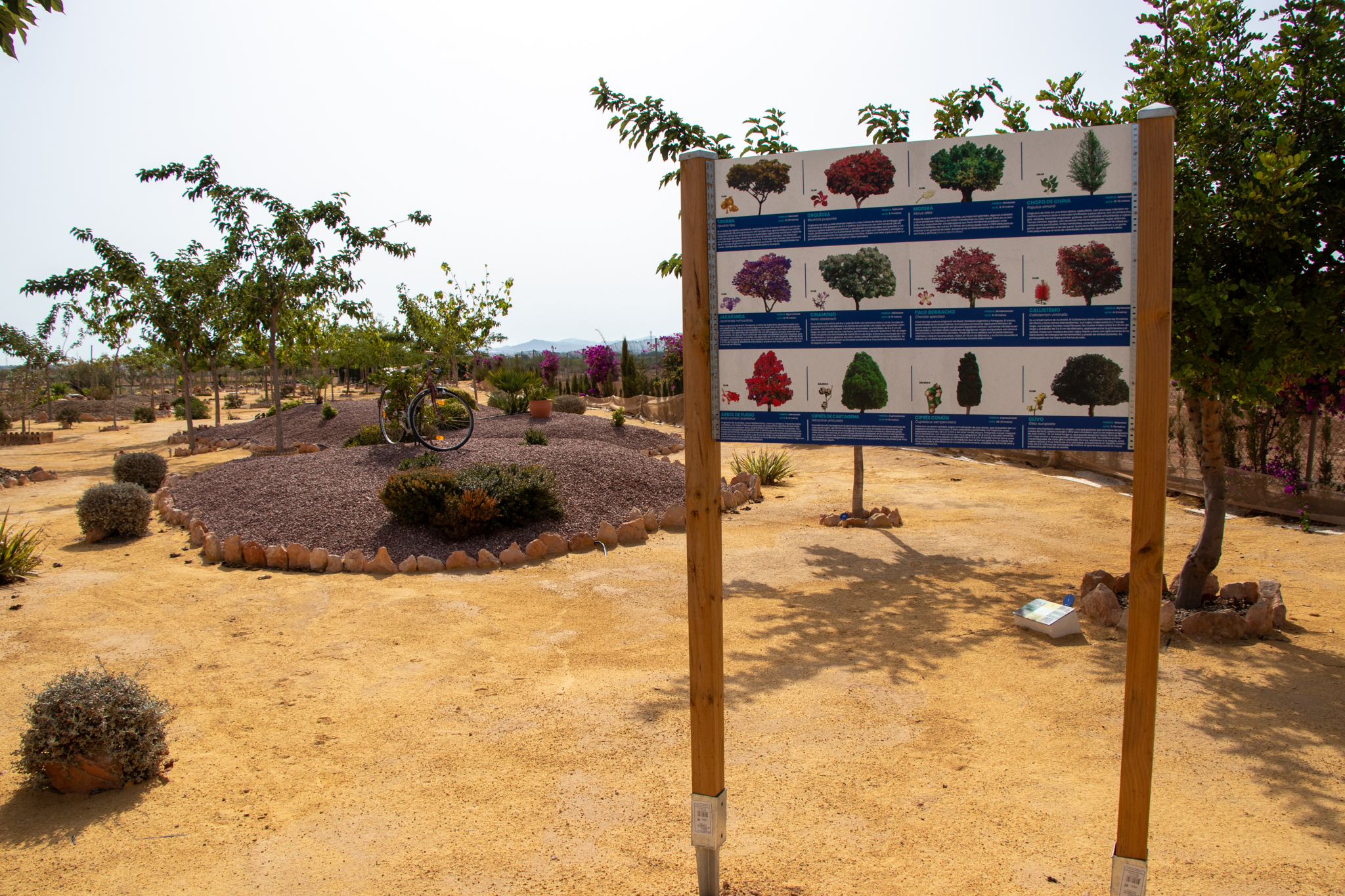 Contamos con mas de 60 especies distintas, entre ellas destacan el Ciprés de Cartagena y otras especias autóctonas del Mediterráneo.